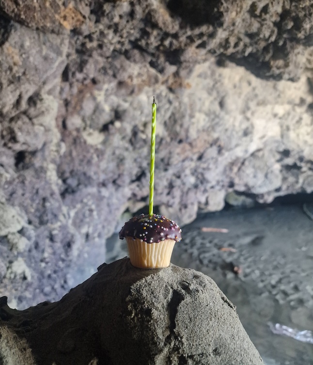 I wandered into a small cave where I discovered a tiny birthday cupcake perched on a rock. Very fitting, and such a sweet surprise. As much as I love a miniature birthday cupcake, I left the little thing where it was for the next person to find.