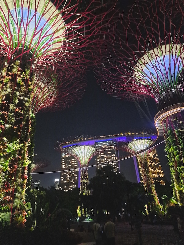I went back in the evening for the Supertree light show, and my goodness, the trees turned into these glowing, chromatic towers of colour and music. My head was spinning from trying to catch it all. After that, I watched the Marina Bay Sands light show, it was so beautiful. An elegant display of light and smoke, with visceral violins and piano symphonies.